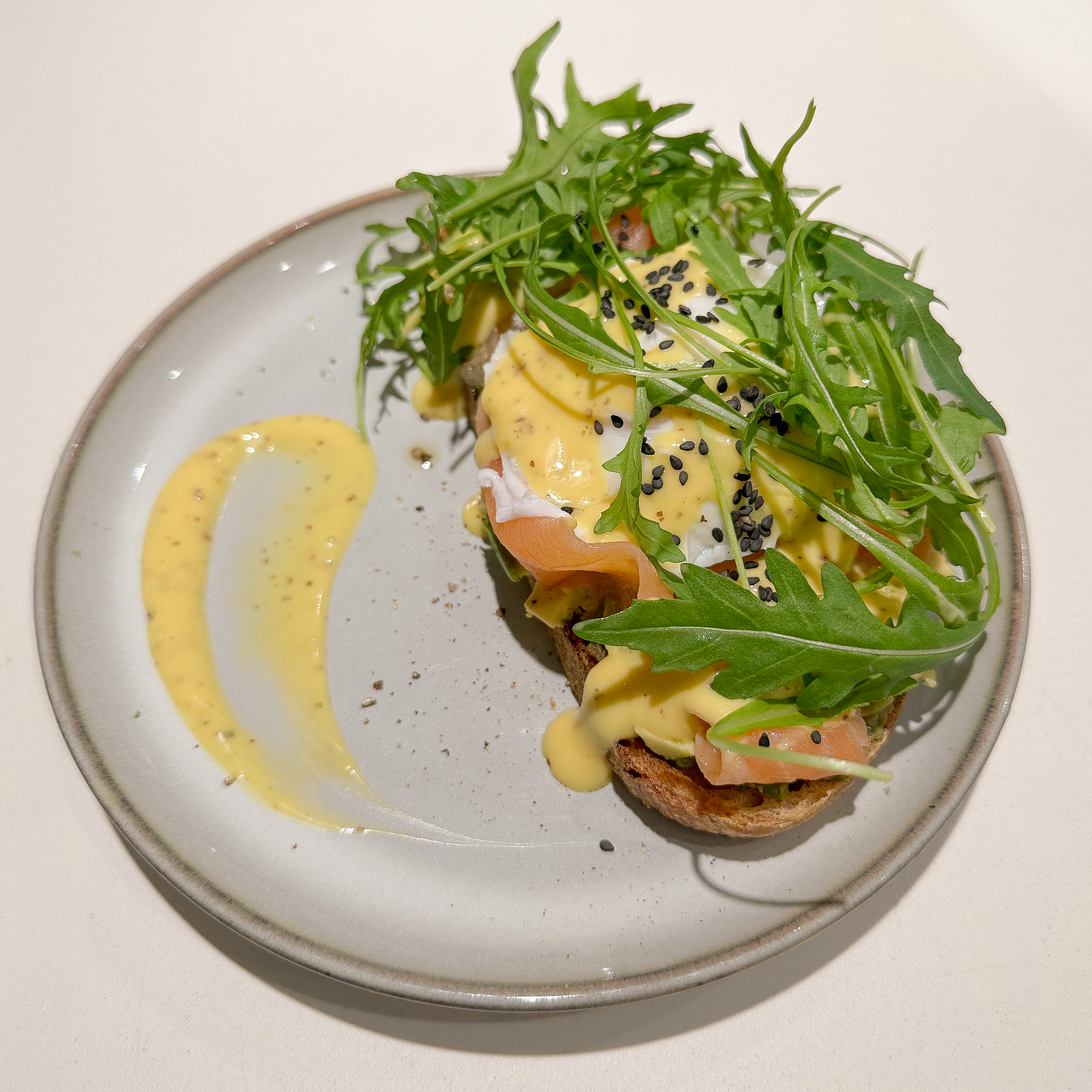 salmón, aguacate, huevo poché y salsa miel-mostaza.....................................9,00 €