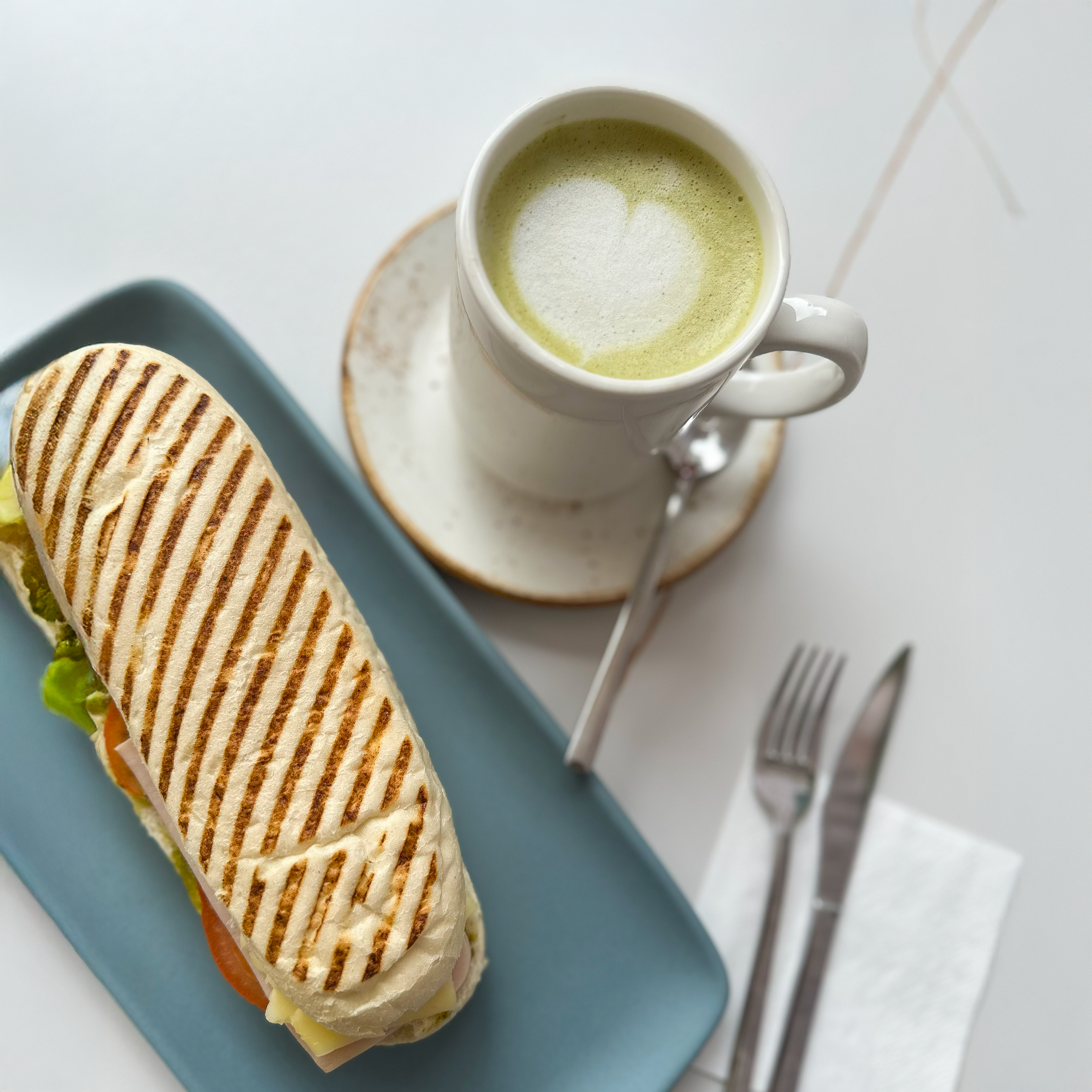 Panini de jamón york, queso, tomate